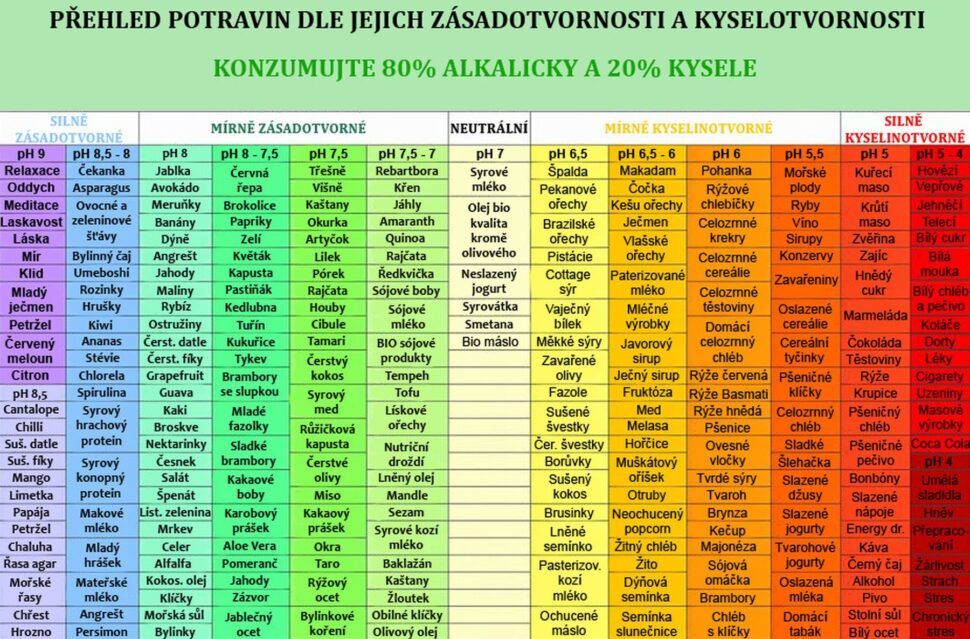 Tabulku s přehledem potravin a jejich PH najdeš pod videem k vytištění.